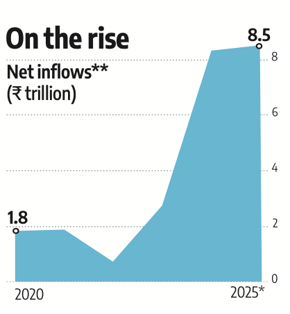 - SIP inflows crossed ₹3 trillion for the first time in 2025